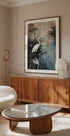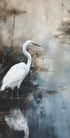 Dieses ruhige Kunstwerk zeigt einen weißen Reiher an einem spiegelglatten Bach, umgeben von üppiger, nebelverhangener Vegetation. Die friedliche Szene ruft ein Gefühl von Ruhe und natürlicher Schönheit hervor und unterstreicht die Eleganz der Tierwelt in ihrem natürlichen Lebensraum.
