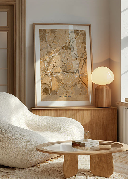 Sepia-Vintage-Karte von Straßburg, Frankreich von Rosana Laiz Blursbyai – Hochwertiges Papier mit einer glatten, matten Oberfläche und eleganter Haptik. Die matte Oberfläche reduziert Blendungen und sorgt für ein raffiniertes, zeitloses Aussehen. Robust und langlebig für den dauerhaften Einsatz, ideal sowohl für den professionellen Einsatz als auch für dekorative Präsentationen.