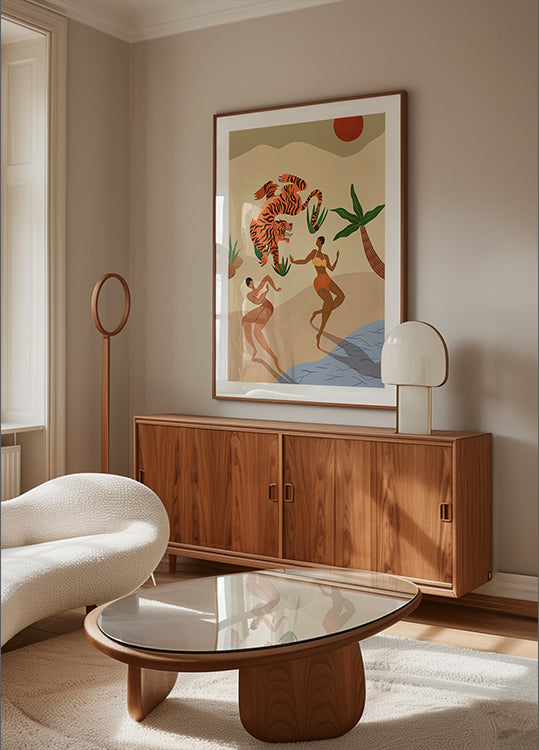 Dancing Tiger von Arty Guava – Hochwertiges Papier mit glatter, matter Oberfläche und eleganter Haptik. Die matte Oberfläche reduziert Blendungen und sorgt für ein raffiniertes, zeitloses Aussehen. Robust und langlebig für den dauerhaften Einsatz, ideal sowohl für den professionellen Einsatz als auch für dekorative Präsentationen.