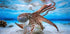 Ein atemberaubendes Unterwasserfoto eines Oktopus, der sich anmutig über den Meeresboden bewegt. Mit seinen gedrehten Armen, der gemusterten Haut und dem klaren blauen Wasser darüber fängt dieses Kunstwerk die Schönheit und das Geheimnis des Meereslebens ein. Ein markantes Kunstwerk für Gartenliebhaber und moderne Innenräume.