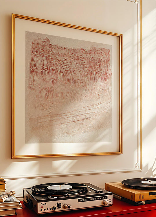 Textured Whispers er en rolig, abstrakt komposition i jordnære nuancer af beige og brændt rød. Organiske linjer og lag af tekstur skaber dybde og bevægelse, som leder tankerne mod japandi-æstetik, blide landskaber og nostalgisk retrocharme – perfekt til et moderne, nordisk hjem. Passer smukt i stue, entre eller soveværelse.