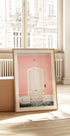 Et stemningsfuldt fotografi af Raisa Zwart fra Lissabon: en skarp hvid dør i en pudderrosa facade, indrammet af klassiske detaljer og solvarme skygger. De blide pasteller og røde accenter fremhæver byens poetiske rytme, hvor stenbelagt gade, patina og sommerlys skaber rolig, urban charme. Perfekt til at bringe varme og farve ind i hjemmet.