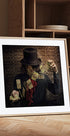 Versuchen Sie Ihr Glück von Kiyo Murakami zeigt einen mysteriösen Illusionisten mit Hut, gefangen zwischen Schatten und magischen Blitzen. Spielkarten wirbeln um ihn herum, während Symbole wie Herzen, Karo, Krallen und Pik das Spiel des Schicksals andeuten. Eine abgenutzte Vintage-Ästhetik trifft auf futuristisches Flair und weckt die Neugier. Es verspricht einen Hauch von Geheimnis im Zuhause.