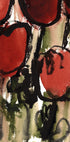 Dyk ned i et moderne, abstrakt blomsterunivers: Tulips I af kunstneren Janel Bragg forener flydende akvarel og blæk med elegante, sorte konturer. Røde og grønne nuancer danser i organiske swirls, der skaber bevægelse, poesi og botanisk energi — en iøjnefaldende accent til både lyse og mørke rum. Perfekt som moderne botanisk statement.