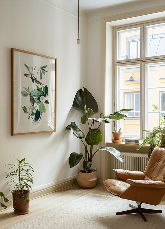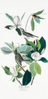Vintage botanische Kunst mit Magnolienblüten und detaillierten Vogeldarstellungen. Eine elegante und komplexe Naturillustration, die lebendiges Blattwerk in einer zarten Komposition hervorhebt. Perfekt für Liebhaber klassischer botanischer Drucke und naturkundlicher Kunst.