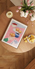En varm hyldest til Lissabon: en hyggelig bordscene med sort kaffe, friske kirsebær og sprøde pastéis de nata. I en minimalistisk, retro farvepalet inviterer motivet til rolig hverdagsluksus og rejsefeber. Naiv, moderne streg af kunstneren Dirkie Nell, perfekt til køkken, kaffe-krog og mediterran stemning.
