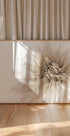 Eine raffinierte Nahaufnahme einer Dahlie in sanften Sepiatönen. Der monochrome Stil und die zarten Details der Blütenblätter verleihen dem Stück eine zeitlose und würdevolle Eleganz, perfekt für ruhige und moderne Innenräume.