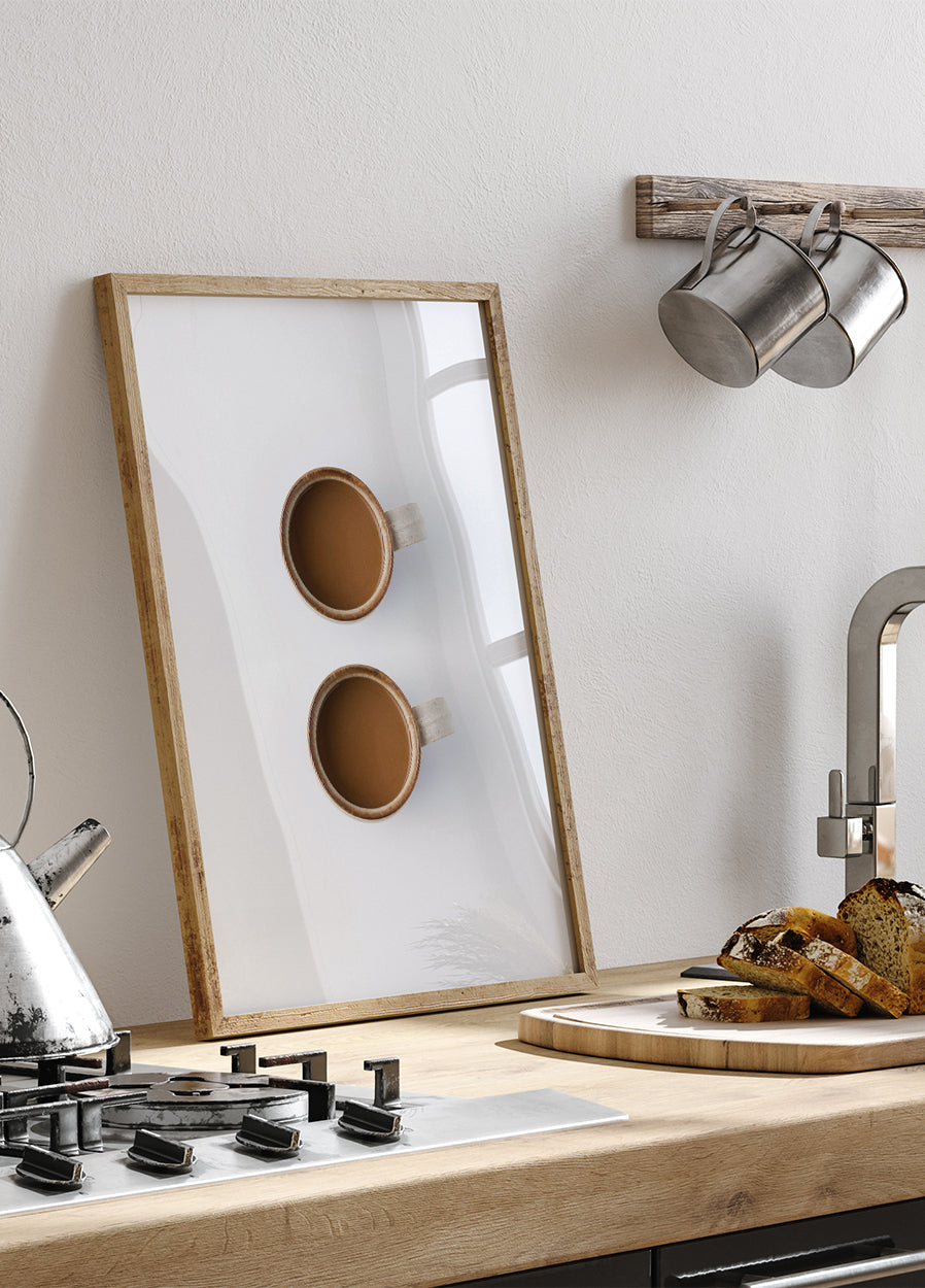 Ein stilvolles und gemütliches Poster mit dem Text „Two Cups Of Coffee“. Perfekt, um jeder Küche oder Kaffeeecke eine warme und einladende Atmosphäre zu verleihen, ob zu Hause oder im Büro.